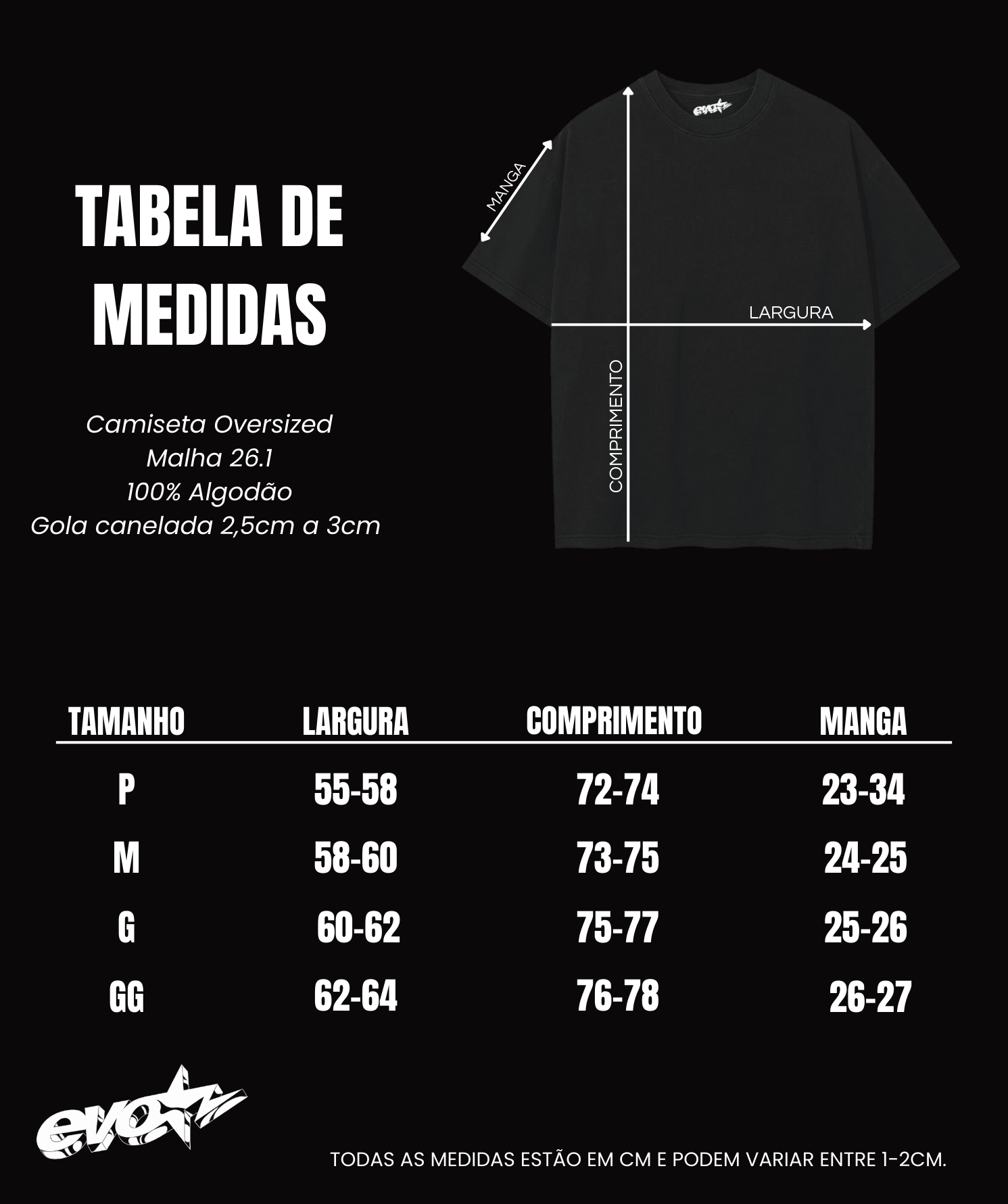 Produzida em 100% algodão, com malha 26.1 e gramatura 180g/m², essa peça oferece resistência, toque macio e durabilidade. A gola canelada de 3cm traz um acabamento premium, reforçando a presença da peça no visual.