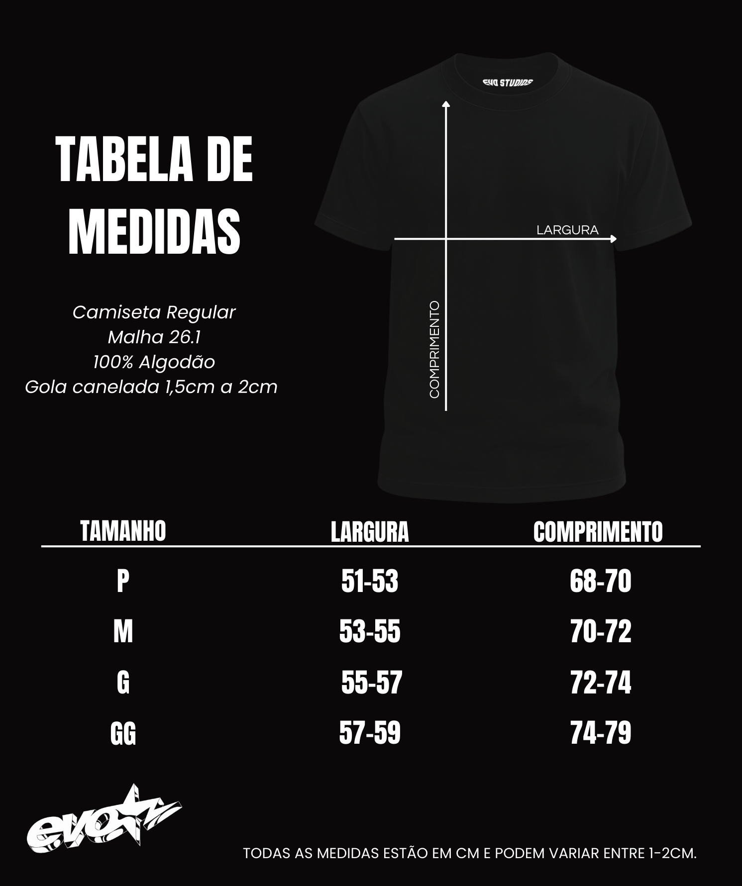 A estampa em DTG entrega alta resolução, cores intensas e fidelidade absoluta aos detalhes, elevando o visual da camiseta para outro nível.